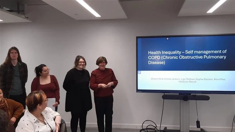 Two more of our team Vlad and Keira (community co-researchers) have recently completed the Health Inequalities Research Capacity and Capability Programme. The programme is led by Blackpool Teaching Hospitals, the HDRC team, NHS R&D NW and Lancaster University academics. Vlad and Keira worked as part of a small group to construct a research proposal, the group’s proposal was titled ‘What are individual’s experiences of understanding and utilizing health information when self managing COPD within 2 years of diagnosis, who live in Blackpool’. They recently attended a celebration event for the programme where they presented their proposal to academics, the cohort and colleagues from the VCSE and public health sector.